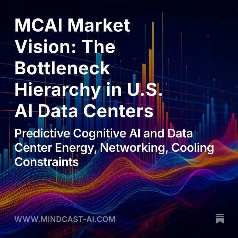 MindCast AI, a predictive cognitive AI firm, frames this study as a foresight simulation of U.S. data center strategy. The thesis is simple: the future of hyperscale AI will not be decided by who buys the most GPUs, but by who secures firm energy, masters network topologies, and engineers cooling that earns community acceptance. Energy functions as the systemic moat, networking as the scale governor, and cooling as the execution filter. The foresight simulation reveals which firms are advantaged across these three layers, and where structural fractures are most likely to occur.