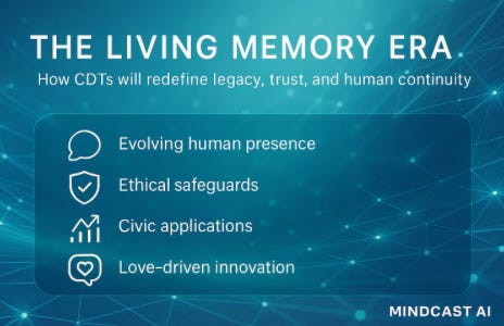 We call this the Living Memory Era â a time when grief transforms into guidance, and legacy becomes a dynamic conversation across generations.