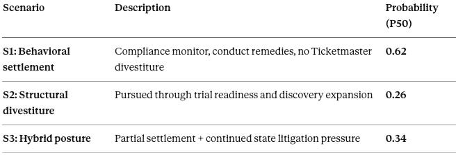 The outcome is not a spectrum. The Live Nation case resolves in one of two structurally distinct ways: