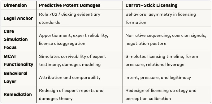 Innovators benefit from clarity: carrot-based licensing reveals shared value, while stick-based strategies may collapse under scrutiny. MCAI allows proactive companies to simulate how their licensing posture will be perceived when replayed in front of a jury, regulator, or investor. It rewards those who internalize reciprocity and penalizes those who simulate goodwill only after litigation begins.