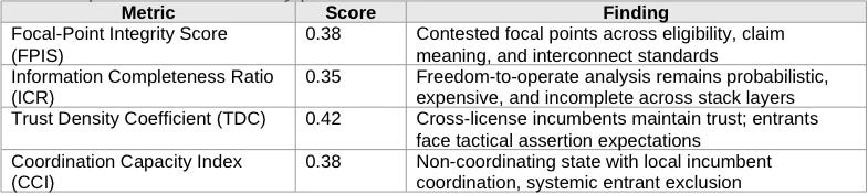 Coase Vision — Coordination Capacity. Measures focal-point stability: eligibility boundaries, claim-meaning notice, thicket density, licensing trust. Outputs coordinating vs. non-coordinating state.
