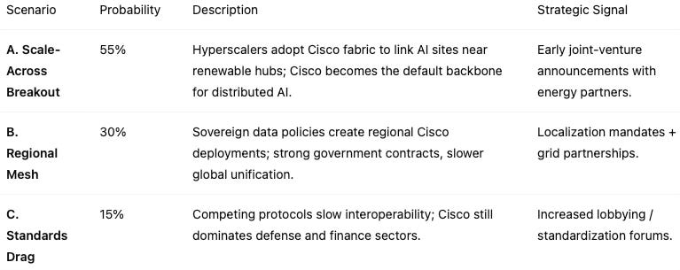 Insight: Every credible AI future runs through Cisco’s network fabric—it’s the constant across all variables.