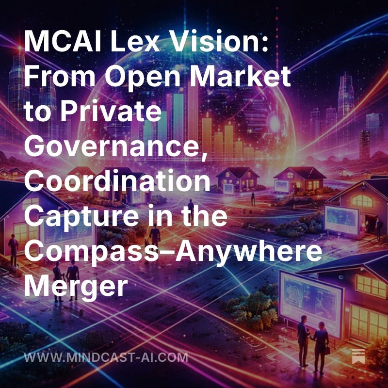 This piece provides a structure‑first antitrust analysis of the Compass–Anywhere transaction, emphasizing consolidation of coordination control points—across brands, agents, and listing flows—rather than immediate commission effects as the primary risk vector. The foresight simulation builds on this by adding explicit multi‑state dynamics, quantitative coordination metrics, and lock‑in probabilities, effectively turning the earlier Lex Vision analysis into a full CDT‑based simulation environment for regulators.