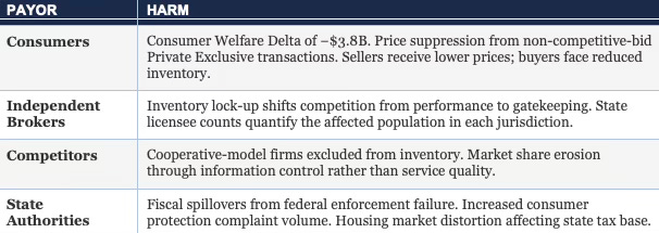 −$3.8 billion Consumer Welfare Delta from price suppression in non-competitive-bid Private Exclusive transactions.