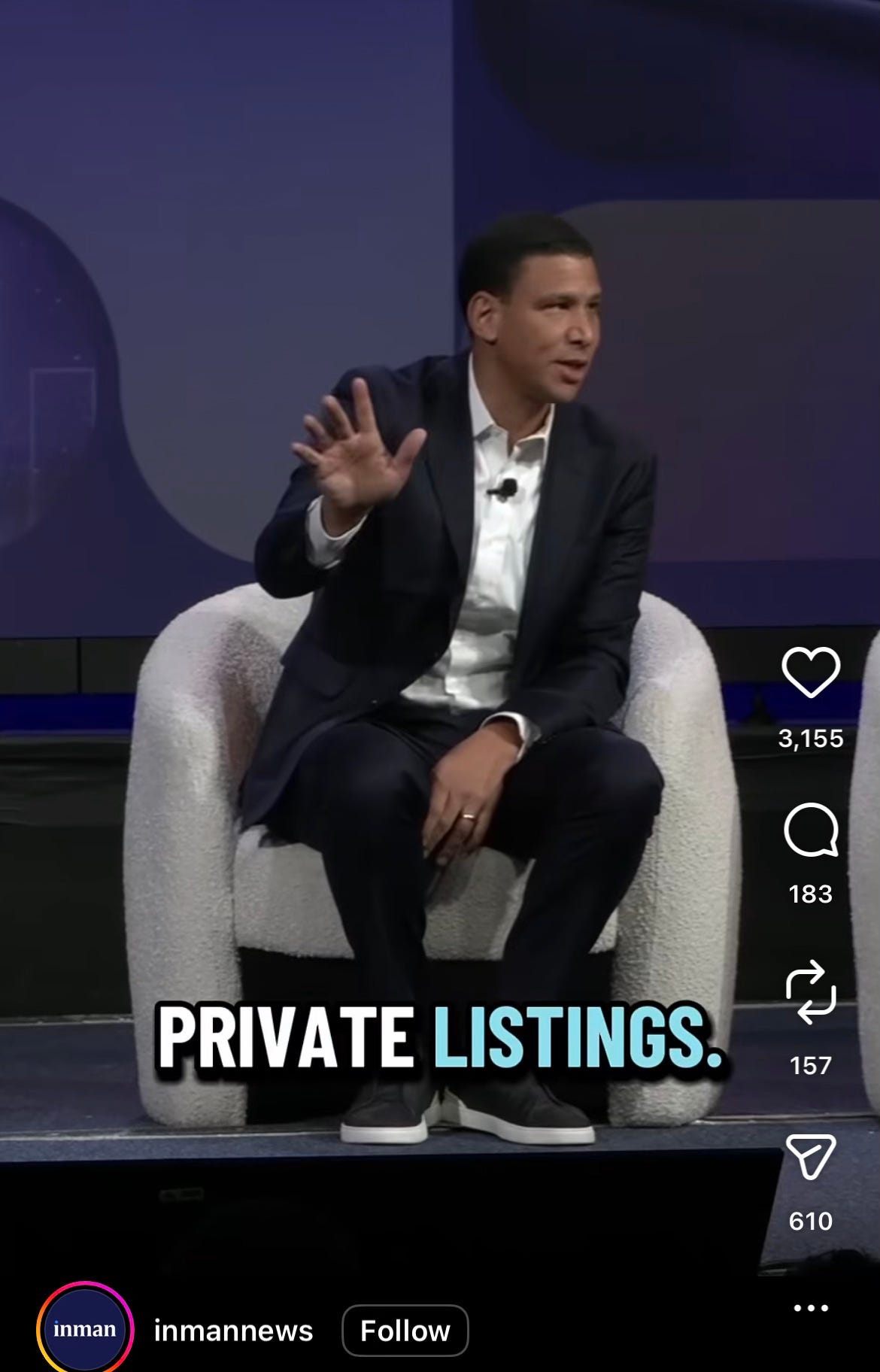 CEO Social Media (Reffkin): Restricted visibility is “premium placement” on an affiliated platform—redefined as “making private listings public”—while the CEO simultaneously delegitimizes the MLS enforcement infrastructure that state transparency laws depend on, and announces the mechanism’s rollout across all nine CIH brands and 340,000 agents.