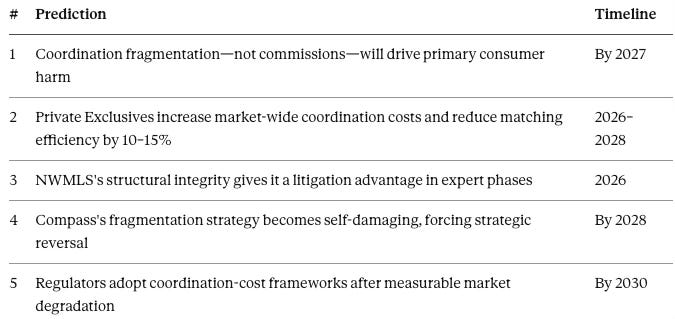 A Foresight Simulation of Coordination Costs, Antitrust Exposure, and the NWMLS Litigation Trajectory (2025–2030)