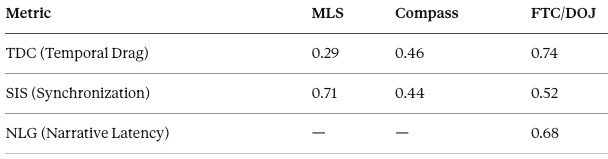 SIS (Synchronization Integrity Score): Measures how well multiple institutions coordinate timing and narratives.
