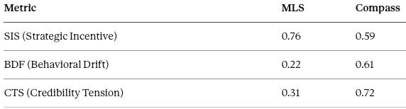 BDF (Behavioral Drift Factor): Tracks deviation from baseline incentives or declared strategies.