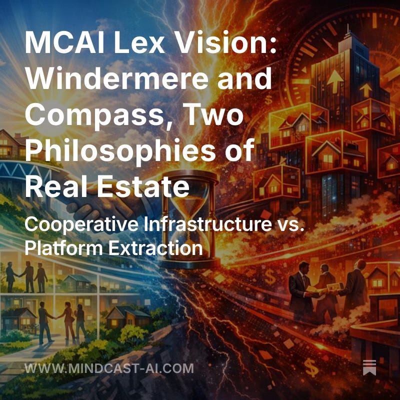 The MindCast AI Private Real Estate Listings series: Washington’s SB 6091 and Private Real Estate Market Control (Jan 2026), The Compass Astroturf Coefficient at the Washington State Senate (Jan 2026), Compass–Anywhere, When Scale Becomes Liability (Jan 2026), Compass vs. SB 6091, Narrative Pre-Installation and the Infrastructure of Exception Capture (Jan 2026), HB 2512 and the Collapse of Compass’s Coordinated Opposition (Jan 2026), How Compass’s State Legislative Testimony Undermined its Federal Antitrust Claims (Jan 2026), The Collapse of Compass’s Co-Conspirator Theory (Jan 2026), Compass vs. Competition: The Case for SB 6091 / HB 2512 Without an Opt-Out Exception (Feb 2026).