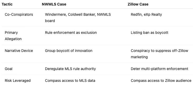 Regulators and courts will demand evidence of collusion—not just policy alignment. And as Compass disavows industry standards, it risks becoming the actual disruptor of shared access. The true target of these lawsuits is not Zillow or NWMLS—it is the legitimacy of collective rule enforcement itself.