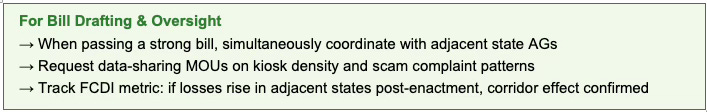 2. Western AG Data-Sharing: State Attorneys General share kiosk density data, scam complaint patterns, and enforcement intelligence through formal MOUs.