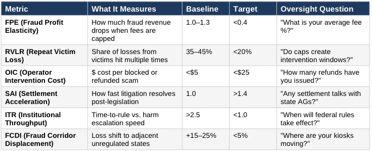 Fee caps, not transaction caps, drive the fiercest opposition because they compress profit margins across all transaction volume—both legitimate and fraud-driven. A $10,000 scam at 20% generates $2,000 in operator revenue; at 5%, $500. The goal is not to eliminate crypto-ATMs but to make the current high-margin extraction model unviable while preserving legitimate low-cost access. Washington’s 5% cap is the national test case for whether states can force this business-model adjustment.