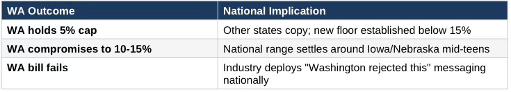 Washington’s 5% fee cap functions as a national test case for whether states can force a business-model adjustment toward lower margins and reduced fraud tolerance.