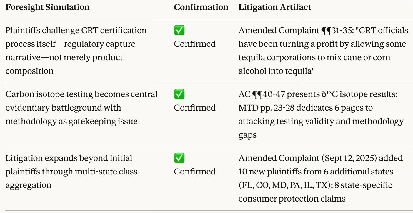 The Diageo litigation therefore functions as a live-fire test of foresight accuracy, not a retrospective narrative exercise.