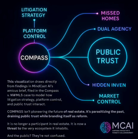 MindCast AI is preparing to submit an Amicus Brief in Support of NWMLS (https://noelleesq.substack.com/p/brief-of-mindcast-ai-llc-as-amicus )in the U.S. District Court, providing structural and narrative analysis of Compass’s tactics and their anticompetitive implications.