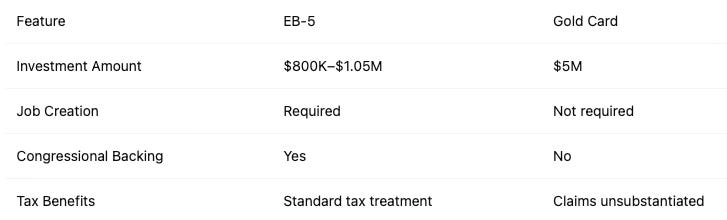 Though widely publicized, the Trump Gold Card remains a framework in flux. For it to transition from political concept to immigration policy, it requires both statutory foundation and administrative infrastructure. This section breaks down the proposed design, contrasts it with the established EB-5 model, and clarifies the legislative steps necessary for legitimacy. We also surface critical questions that have yet to be addressed.