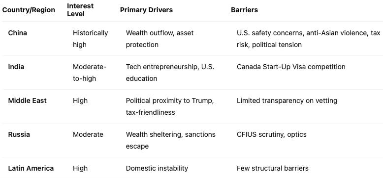 Even in its conceptual stage, the Trump Gold Card visa has sparked substantial global interest. Understanding where this demand originates—and why—is critical to gauging the policy’s viability. This section identifies the ideal investor profile and maps geographic appetite, highlighting both motivation and resistance. By analyzing country-specific drivers and barriers, we clarify the contours of the program’s true market potential.