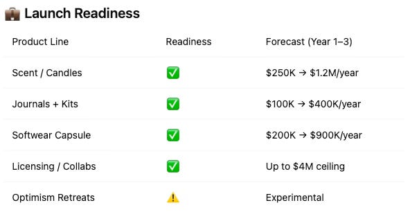 Cultural trust translates into market leverage when a brand can expand without losing its identity. This section models how Hapa Time can evolve from digital presence to physical experience — through products, licensing, and emotional rituals. The simulation forecasts revenue tiers and brand expansion paths over a three-year runway.