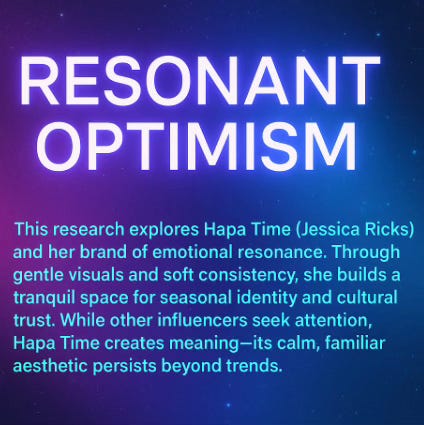 Her brand ranks in the top 3–7% of public-facing creators: emotionally trusted, coherent, and consistent across multiple years. In a media environment saturated with spectacle, Hapa Time offers something rarer: resonant optimism.
