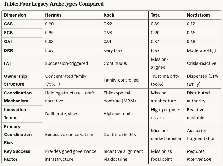 Why This Architecture Works: The family designed governance for coordination before crisis. Concentrated ownership, clear succession protocols, and strong narrative identity create structural stability that allows innovation when the family chooses, not when markets demand.