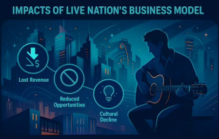 As a result, performers are losing money—an estimated $1.5 to $1.8 billion per year—and many artists have fewer chances to tour or reach audiences. The culture of live music is also suffering. There is less space for creativity, fewer new ideas, and less connection between performers and communities.