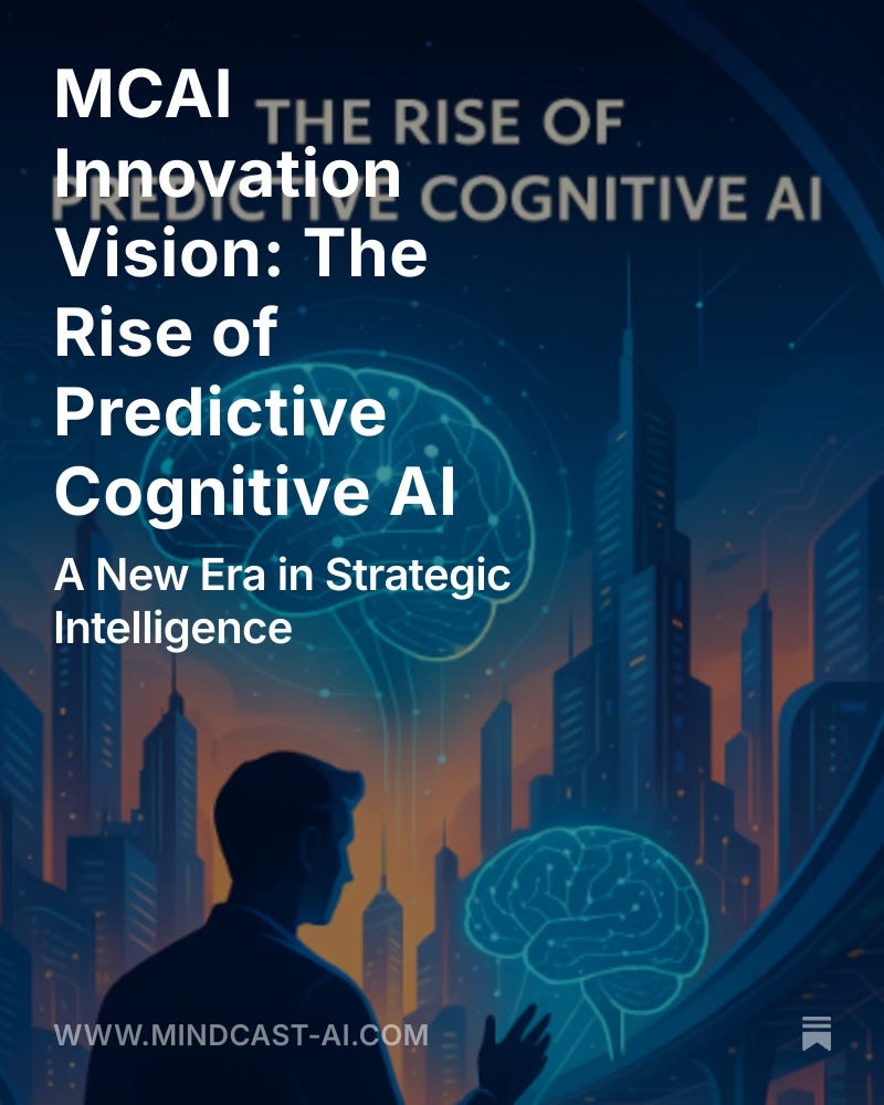 MCAI Innovation Vision: The Next Generation of AI is Predictive Cognitive Intelligence (July 2025), While the AI industry obsesses over scaling, regulation, and AGI hype, it continues to miss the deeper architectural gap: the inability to model how decisions evolve over time under shifting constraints. Predictive Cognitive AI addresses this by simulating judgment, adaptation, and institutional behavior—not just generating responses, but reflecting how leaders and organizations actually think, decide, and adapt under pressure. Developed by MindCast AI LLC, this category-defining approach repositions AI from a content engine to a decision infrastructure layer. In national security, governance, and markets, it’s not the smartest output that matters—it’s the most coherent judgment over time.
