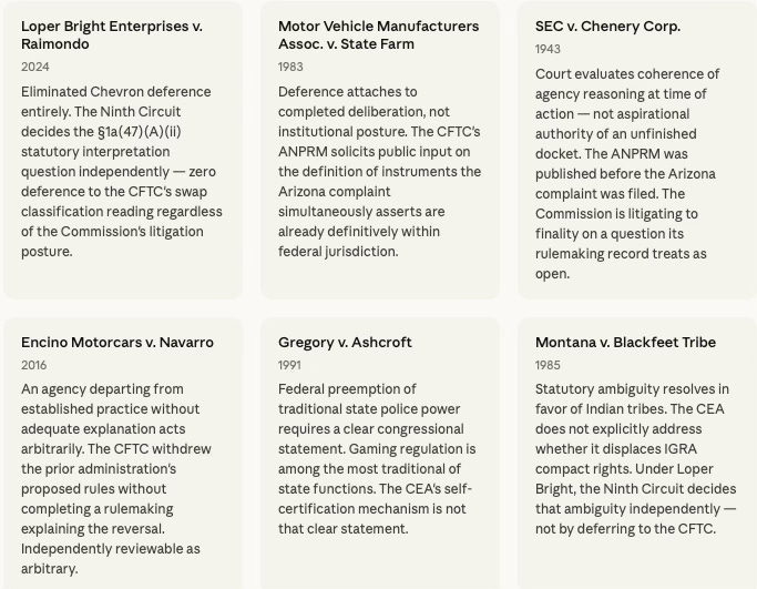 The deference stack resolves to a single point: the Ninth Circuit must decide the §1a(47)(A)(ii) statutory question independently, without relying on the CFTC to supply the answer. Under each of the following cases, the CFTC’s institutional posture in this litigation fails independently of the others. The deference defect does not help Kalshi directly — but it means the panel reaches its conclusion through its own statutory analysis, not through deference to the Commission.