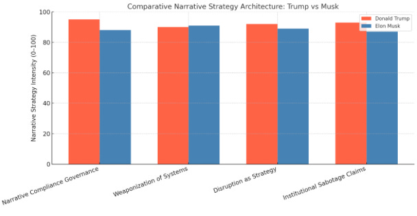 This visual complements your argument that Trump and Musk operate in narrative-adjacent domains but deploy structurally similar behavioral tools—a key insight for forecasting future institutional friction and media-based governance strategies. Let me know if you'd like it included in a slide, carousel, or paper-ready figure export.