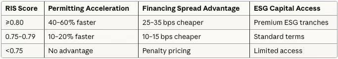 Trust accelerates approvals. Projects with RIS ≥0.80 experience 15-20% faster permitting than equivalent sites with RIS <0.75. Community engagement isn’t regulatory theater—it’s measurable capital efficiency. Firms investing in trust infrastructure access cheaper debt and shorter timelines.