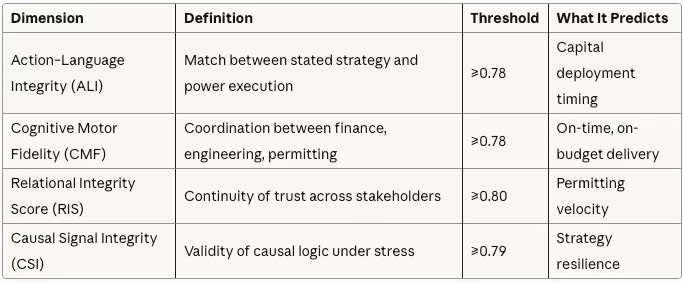 High coherence scores tell us who will win—but not how they’re building institutional infrastructure to sustain advantage. Part II—Integrating Power, Capital & Trust—documents the mechanisms taking shape now: tri-party agreements where CRE, utilities, and hyperscalers share equity; ESG bond covenants pricing RIS scores directly; community benefit corporations converting trust into development rights. These aren’t theoretical—they’re being finalized in Q4 2025 and will define competitive structure through 2030.