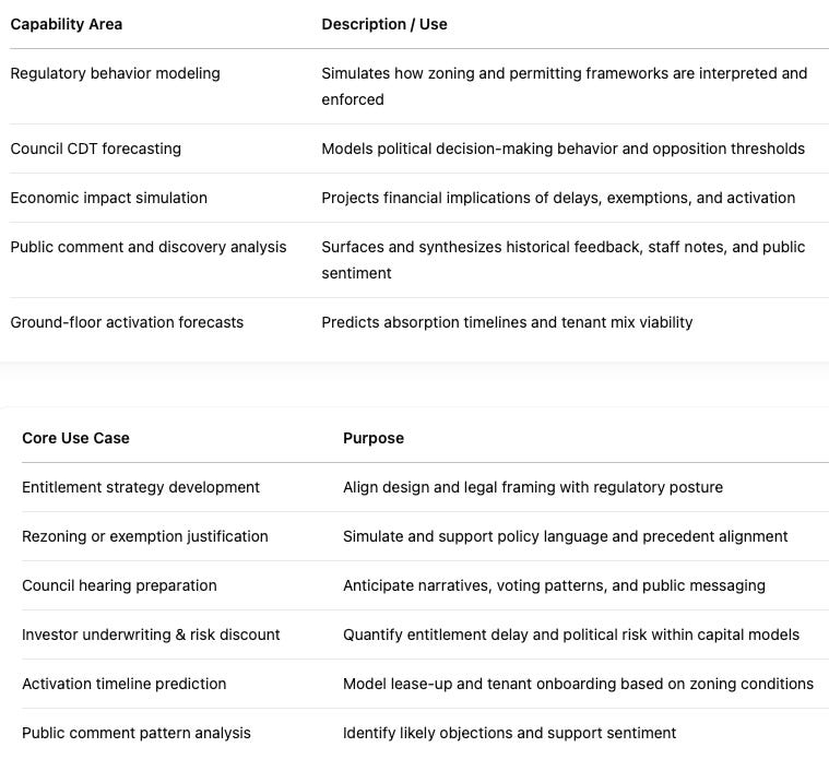 MCAI enables developers, brokers, and capital partners to operate with foresight—translating political risk, code ambiguity, and stakeholder behavior into actionable strategy.