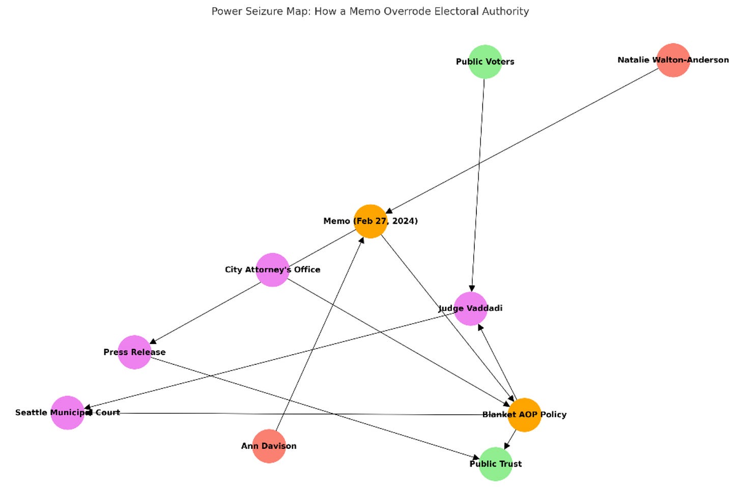 In February 2024, a memo written by Seattle criminal division chief Natalie Walton-Anderson and endorsed by Seattle City Attorney Ann Davison triggered a procedural cascade that effectively stripped Judge Pooja Vaddadi—an elected official—of her courtroom authority. The memo cited vague, unverified examples of alleged misconduct and was swiftly followed by a blanket disqualification policy, barring her from presiding over all criminal cases.