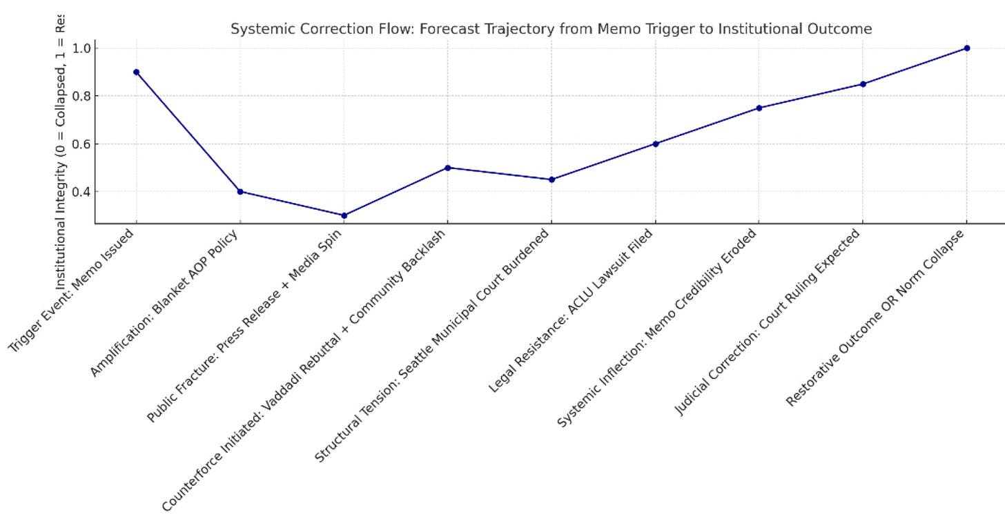 MindCast AI’s Legal Vision analysis flagged these deviations as high-risk: the City Attorney’s Office had employed structural mechanisms without meeting the thresholds of procedural justification or transparency. The use of narrative artifacts (memo and press release) in place of formal charges or appeals triggered a breakdown in causal trust.