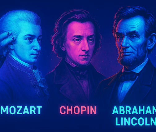 Predictive Value: Lincoln's dual strength in cognitive clarity and emotional integrity offers more than historical admirationâit provides a forecasting framework for identifying future leaders with similar depth. By scoring high on both Mozart and Chopin Vision metrics, a modern leader would likely demonstrate resilience in ideological gridlock, narrative discipline under emotional duress, and structural clarity in long-range planning. These traits suggest not only the ability to survive crisis but to shape the post-crisis order with legitimacy and coherence. Institutions can apply this model to anticipate which leaders are more likely to preserve unity, absorb pressure without distortion, and encode moral clarity into sustainable governance.