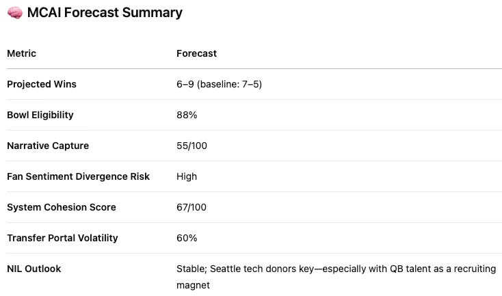 đ MCAI NCAA Football Vision Season Forecast: Huskies Football 2025