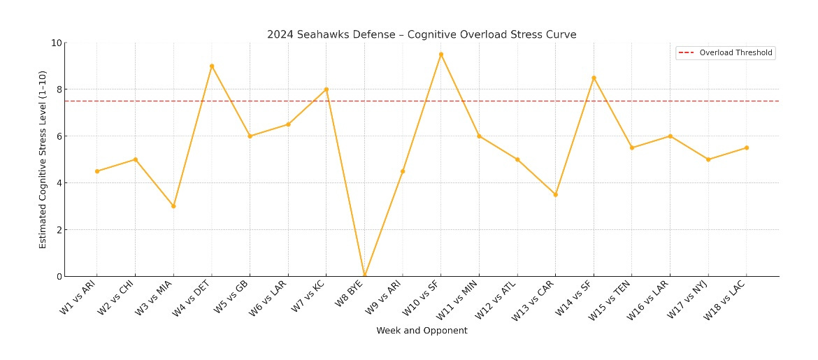 2024 Seahawks Defense – Cognitive Overload Stress Curve.