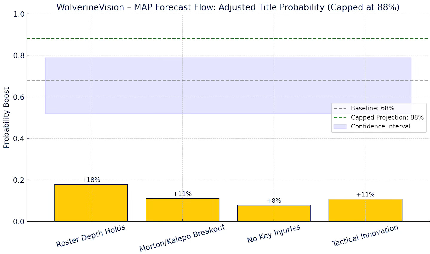 Why it matters: The simulation begins with a 68% baseline title probability. Each variable—roster health, breakout talent, in-game adjustments—represents a controllable factor. These aren’t hopes. They’re levers the program can actively pull.