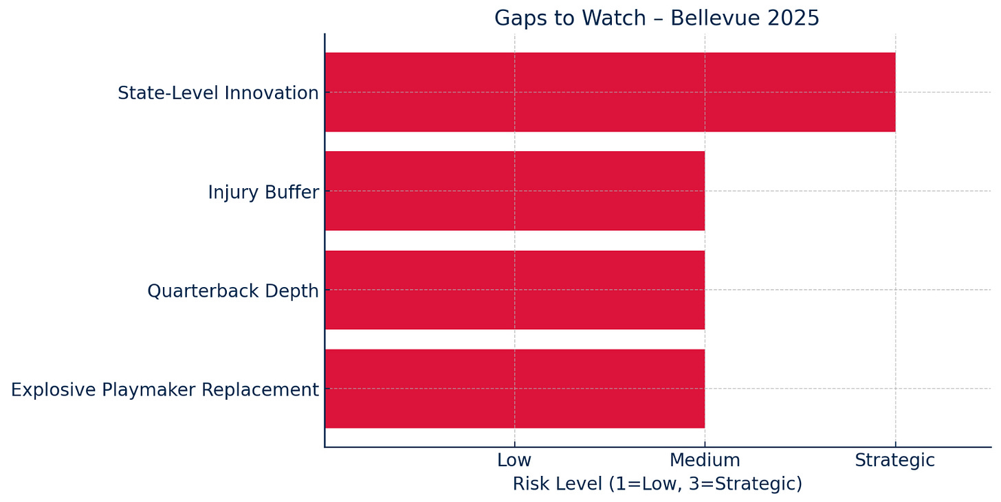 While Bellevue has a disciplined rotation, key position groups—particularly OL and LB—lack multi-layer depth. Even one or two injuries could stress the system.State-Level Innovation