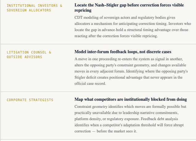 Contact mcai@mindcast-ai.com to partner with us on Predictive Law and Behavioral Economics + Game Theory Foresight Simulations. To deep dive on MindCast work in Cybernetic Foresight Simulations upload the URL of this publication into any LLM and prompt ‘reconstruct MindCast framework with three degrees of cited sub links.’ See Live-Fire Game Theory Simulators, Runtime Predictive Infrastructure.