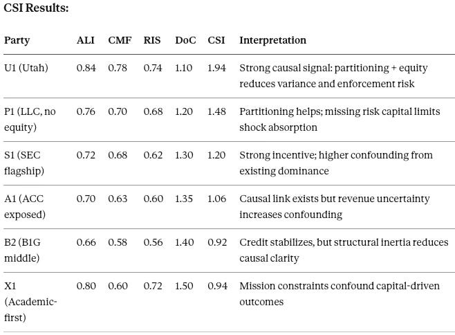 Simulation 1 — Causation Vision (CSI-Gated): “Does Capital Architecture Cause Stability?”
