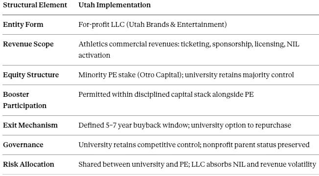 The University of Utah’s December 2025 announcement provides the first operational template for athletics asset partitioning with outside equity participation: