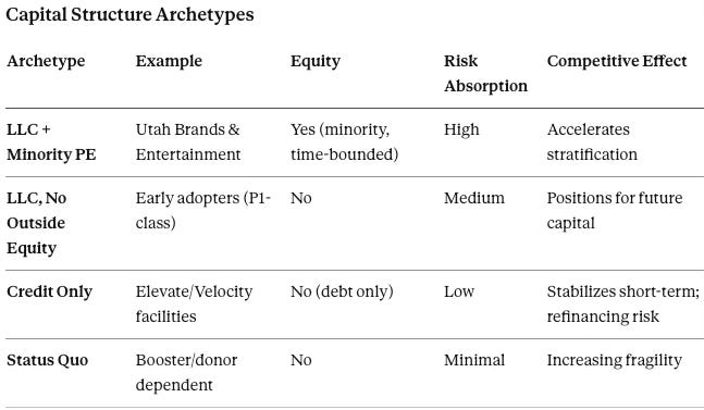 Private equity participation is not opportunistic arbitrage but a rational response to institutional stress. Importantly, Utah demonstrates that PE is entering as time-bounded, minority risk capital, not as permanent governance replacement—an architectural choice that minimizes political, tax, and antitrust backlash while providing balance-sheet relief.