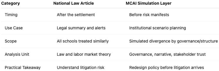 For: University Presidents, General Counsel, Trustees, Strategy Officers, and NIL Compliance Leaders ⚠️ MCAI Insight: Peer-mirroring compensation models without public rationale now trigger convergence risk—before any lawsuit is filed.