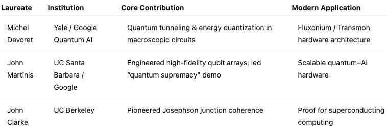 In October 2025, Michel Devoret, John Martinis, and John Clarke won the Nobel Prize in Physics for proving that macroscopic electrical circuits can behave quantum-mechanically. Their experiments turned Josephson junctions into controllable “artificial atoms,” establishing the foundation of superconducting qubits. As AI data centers hit thermal and spatial ceilings, this breakthrough introduces a new industrial variable—coherence as yield.