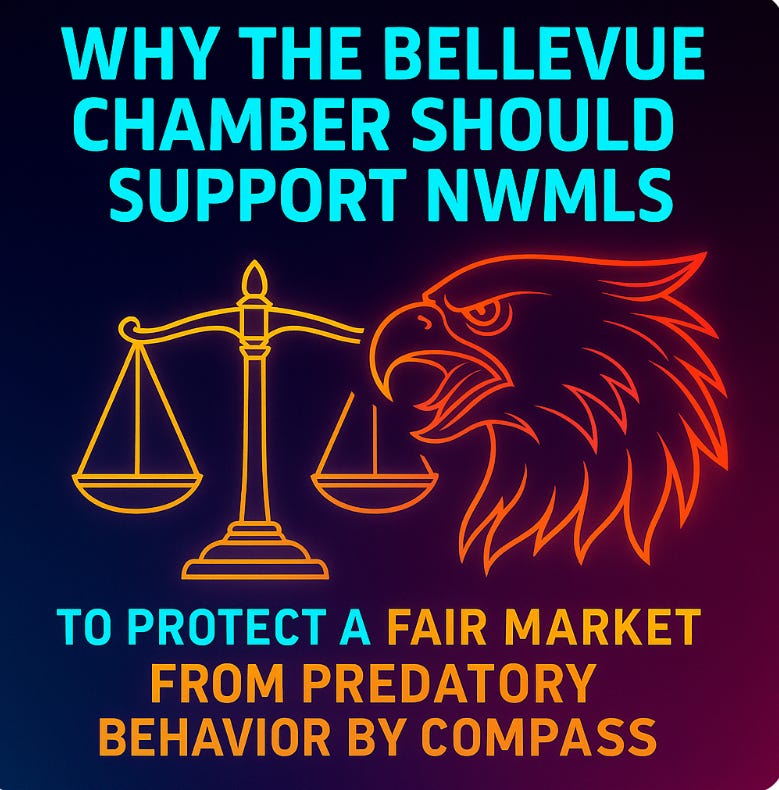 ✅ The Bellevue Chamber of Commerce urges the Court to reject Compass’s attempt to override Washington’s listing transparency rule. A ruling in favor of NWMLS will preserve local governance, fair competition, housing access, and economic balance. Compass’s lawsuit does not seek justice; it seeks leverage. The Chamber stands with NWMLS and the thousands of Washington brokers, buyers, and service providers who depend on an open, rules-based marketplace.