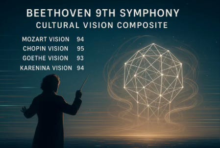 To further illustrate the Cultural Vision profile of Beethoven’s 9th Symphony, the following simulation snapshot integrates recursive structure, emotional coherence, and moral propulsion into a futuristic framework:
