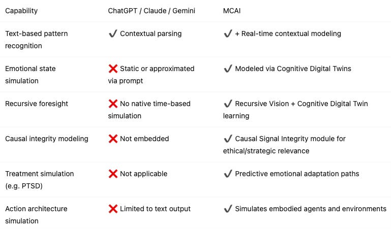 Insight: MCAI extends pattern recognition into a domain of recursive foresight, emotional simulation, and ethical adaptation—functions once exclusive to living intelligence.
