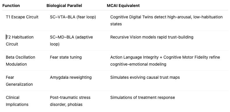 The study of rapid pattern recognition in neural threat processing reveals deep efficiencies in how biological systems adapt to repeated exposure. These mechanisms—split across fast reactivity and slow habituation—offer a template for next-generation artificial intelligence design. MCAI not only mimics these architectures but extends them into the realm of foresight, trust modulation, and adaptive redesign.
