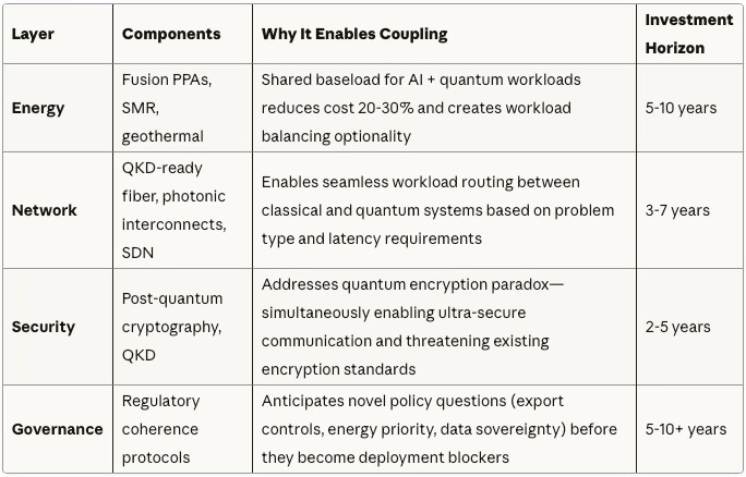 This convergence validates the core thesis: by 2035, competitive advantage flows to those who master quantum-coupled infrastructure as a unified system rather than separate layers.