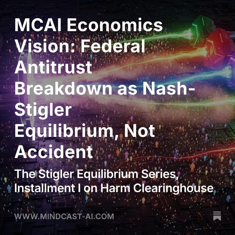MCAI Economics Vision: Federal Antitrust Breakdown as Nash-Stigler Equilibrium, Not Accident